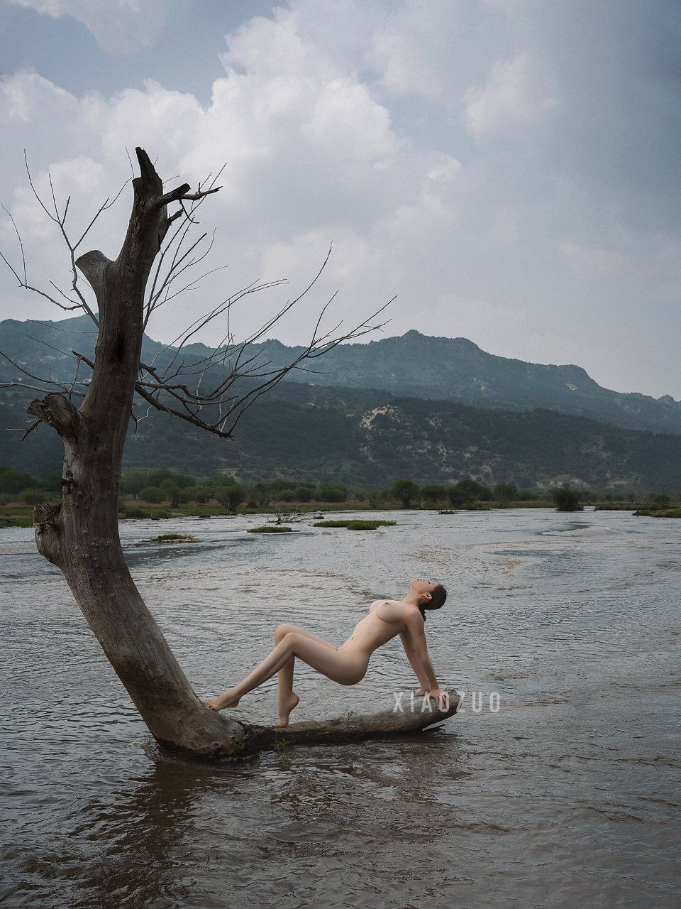 Một cô gái tắm ở thác Bà Yên Bái.