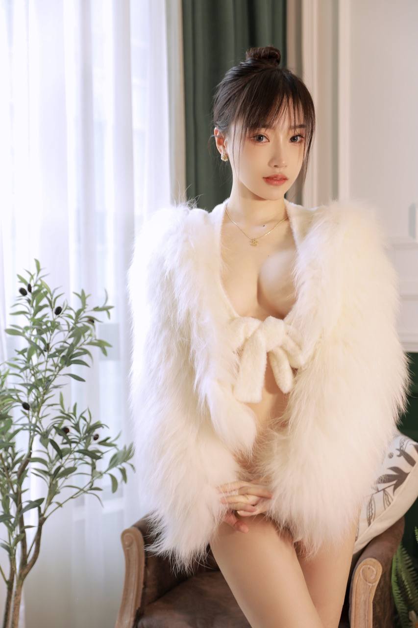 Núm vú của người mẫu được bao phủ bởi một chiếc áo khoác lông hoàn hảo.